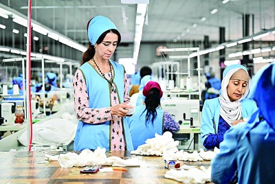 9月12日,在塔吉克斯坦哈特隆州丹加拉区,工人在中塔合作项目丹加拉农业纺织产业园成衣车间工作。新华社发